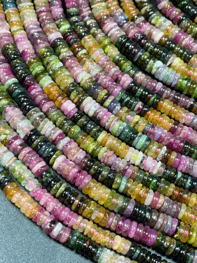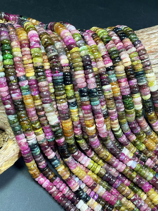 AAA Natural Tourmaline Gemstone Bead 6mm 8mm Rondelle Shape, Gorgeous Multicolor Watermelon Tourmaline Gemstone Bead, Full Strand 15.5"