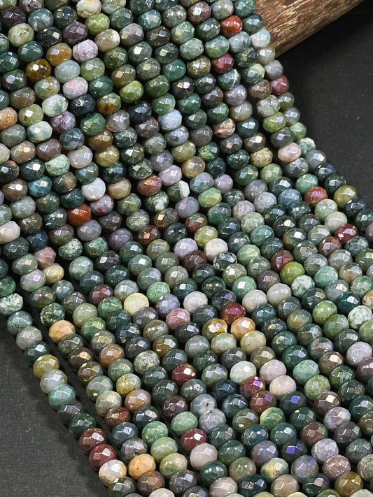 Mystic Indian Agate Gemstone Faceted Rondelle 5x8mm Gorgeous Green and Purple Color Handmade Bead Full Strand 15.5"