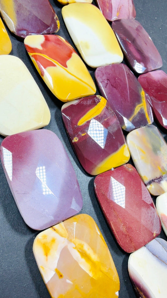 Natural Mookaite Faceted rectangular shaped Gemstone Bead, Beautiful Natural Red, Brown, Beige Color, Full Strand 15.5".