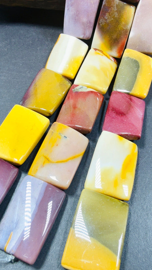 Natural Mookaite Rectangular shaped Gemstone Bead, Beautiful Natural Red, Brown, Beige Color, Full Strand 15.5".