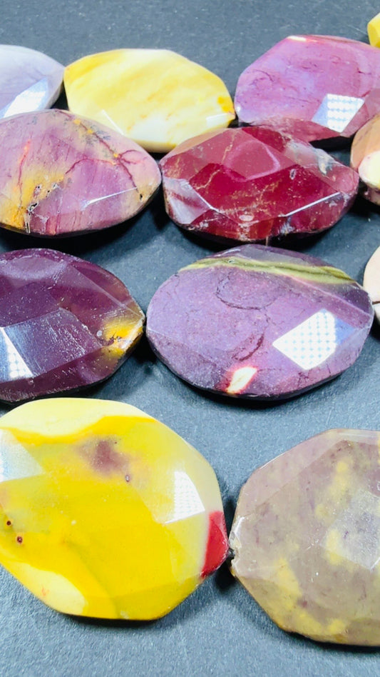 Natural Mookaite Faceted Oval Shaped Gemstone Bead, Beautiful Natural Red, Brown, Beige Color, Full Strand 15.5".