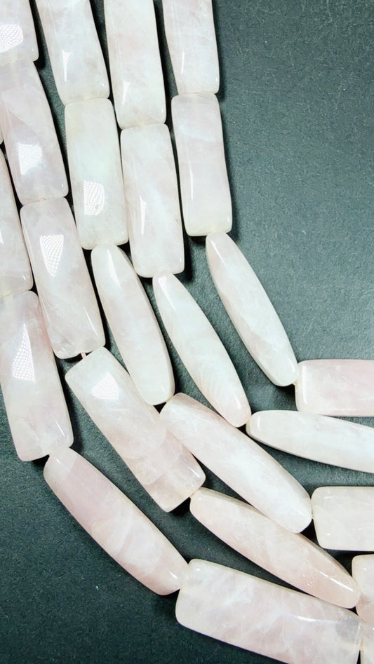 Natural Rose Quartz Gemstone Bead, Rectangular Shape with rounded edges beads, Beautiful Natural Pale Pink Color Rose Quartz 15.5"