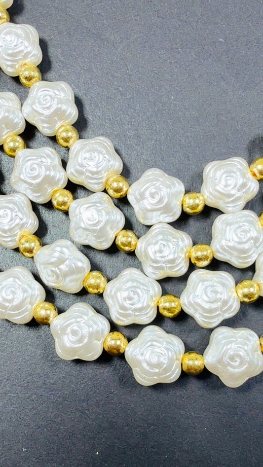 Chinese Swarovski Pearl Crystal Flower Shape Beads, Beautiful White Swarovski Crystal Pearl 7.5"