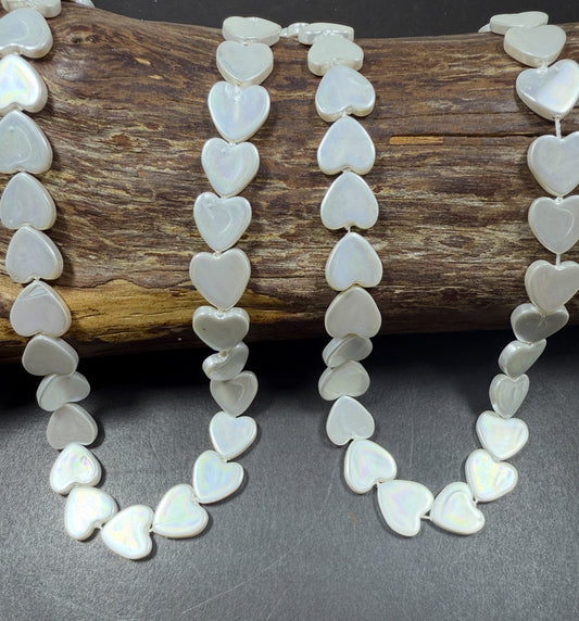 Natural Shell Pearl. Gorgeous Iridescent White color, 12mm Heart shape shell bead.Unique natural white shell bead. High quality bead!