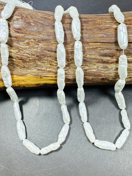 AAA Natural Pearl. Freefrom Biwa tube shaped pearls, Beautiful White Swarovski Crystal Pearl 15.5"