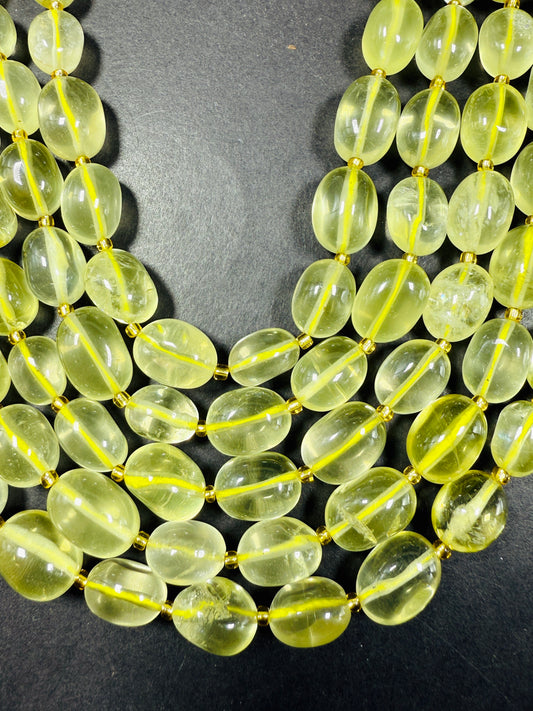 NATURAL Lemon Quartz Gemstone Bead 16x12mm Oval Shape, Beautiful Lemon Yellow Color Quartz Gemstone Bead Great Quality 15.5"