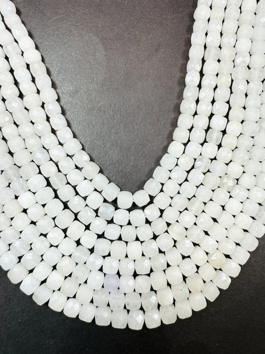 AAA Natural White Moonstone jade bead . Faceted 6mm cube shape bead. Beautiful natural white moonstone . Full strand 15.5”