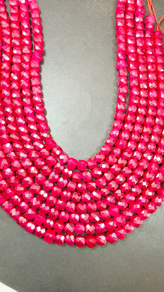 Natural Ruby jade bead . Faceted 6mm cube shape bead. Beautiful natural Hot Pink Ruby Color. Full strand 15.5”