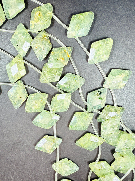 Natural Prehnite Gemstone Bead Faceted 17x25mm Diamond Shape, Beautiful Natural Green Prehnite w/ Epidote Gemstone Beads, Full Strand 15.5"