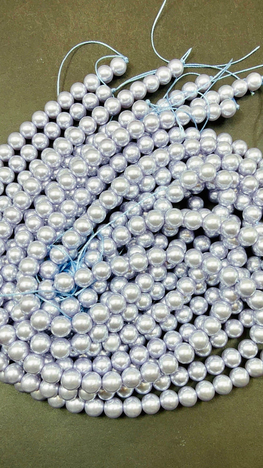 Chinese Swarovski Pearl Crystal Beads. 8mm Smooth Round Bead, Beautiful Light Purple with grey tone Swarovski Crystal Pearl 15.5"