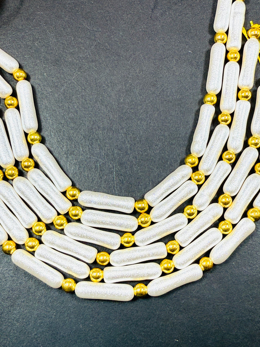 Chinese Swarovski Pearl Crystal Beads. Freefrom Biwa stick shaped pearls, Beautiful White Swarovski Crystal Pearl with golden ball 15.5"