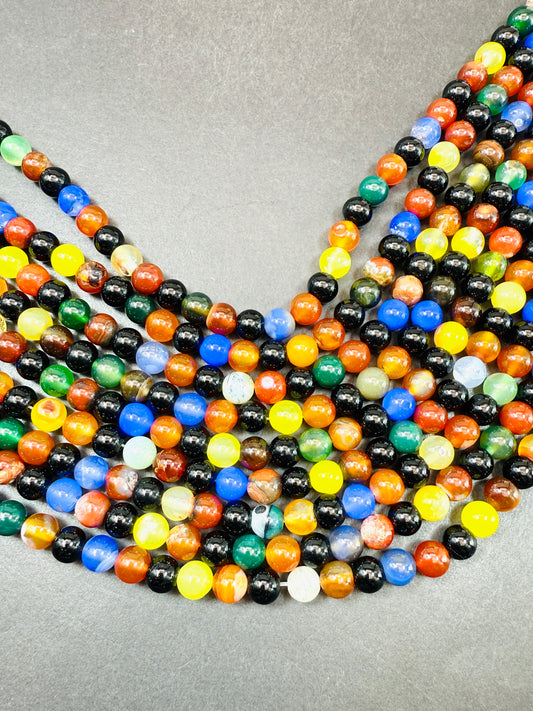 Natural multi color black jade gemstone bead. Smooth Round shape stone bead. Unique black, yellow,blue, green and brown color jade beads.