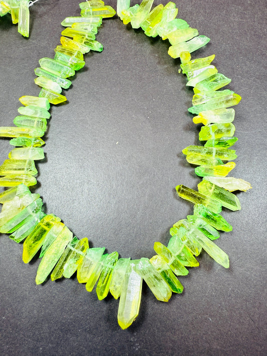 AAA natural rainbow quartz crystal bead. Freedom stick shape. Gorgeous lemon green color quartz crystal bead. High quality gemstone. 15.5”
