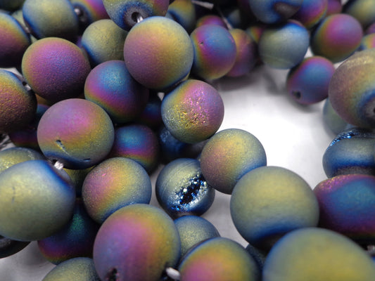NATURAL Gemstone Druzy Agate Beads, Galaxy Smooth Round, Matte Finish, 12mm 10mm 6mm 8mm Full Strand 15.5" Great for Jewelry Making!!!