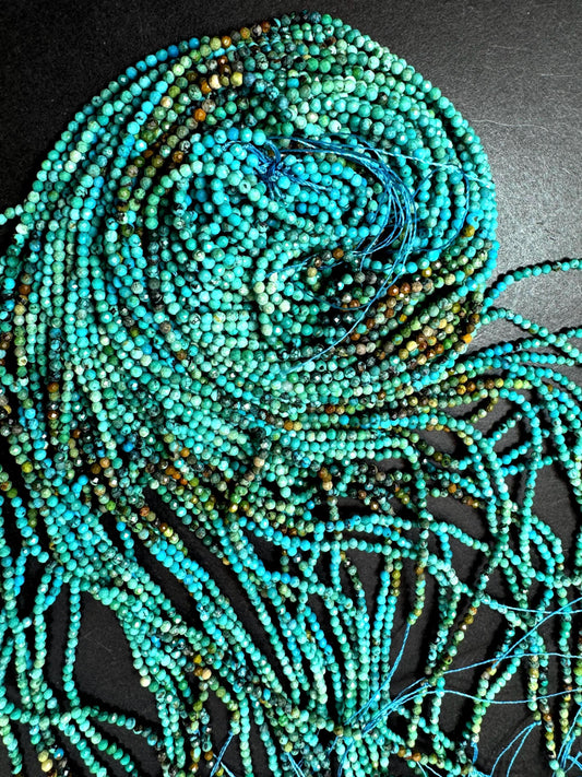 AAA Natural Turquoise Gemstone Bead. Faceted Round Shape Bead. Beautiful Natural Blue Turquoise Beads. Excellent Quality. Full Strand 15.5”