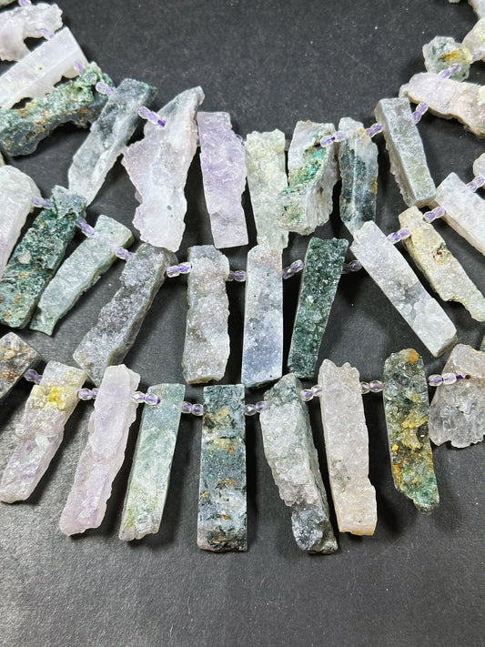 Natural Raw Druzy Agate Geode Gemstone Bead Freeform Graduated Stick Shape Beads, Beautiful Natural Raw Druzy Agate Gemstone Beads 15.5"