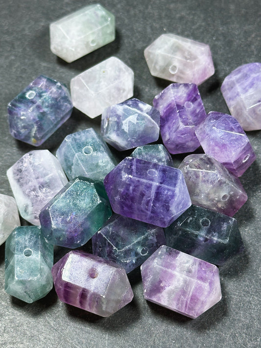 Natural Fluorite Gemstone Bead Faceted 25x16mm Double Point Barrel Shape Bead, Gorgeous Natural Purple Green Color Fluorite LOOSE BEAD (1pc)