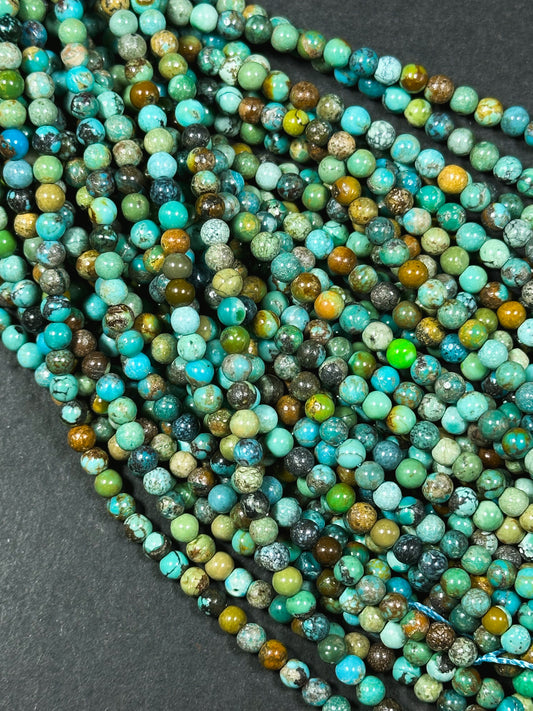 Natural Turquoise Gemstone Bead 4mm Round Beads, Beautiful Natural Blue Green Color Hubei Chinese Turquoise Stone Beads Full Strand 15.5"