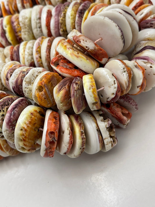 AAA Natural spiny oyster shell Graduated shape. High polished spiny oyster shell necklaces bead. White, Red, Orange yellow Natural color