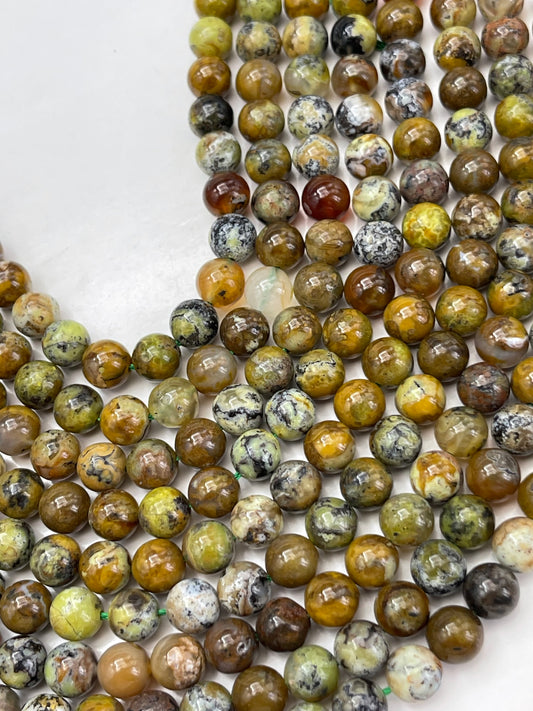 AAA Natural green opal stone bead Round bead, Natural multi-color green, yellow brown Opal gemstone. Nice quality. Full strand 15.5”