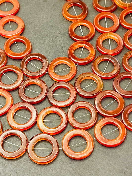 Natural Carnelian Coin Gemstone Bead 26mm Coin Shape Bead, Gorgeous Natural Orange Red Color Carnelian Gemstone Bead, Full Strand 15.5"