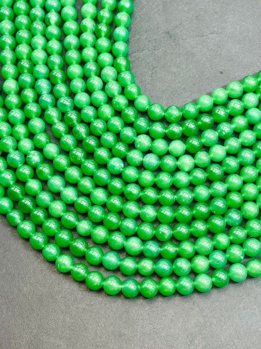 Natural Green Jade Gemstone Bead Smooth 6mm 8mm 10mm Round Beads, Gorgeous Natural Deep Green Color Jade Gemstone Bead Full Strand 15.5"