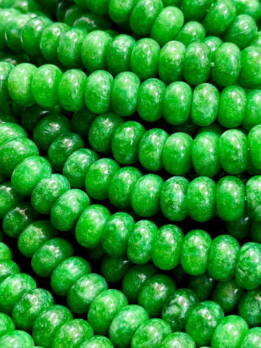NATURAL Green Jade Gemstone Bead 6x10mm Rondelle Shape Bead, Beautiful Green Color Jade Gemstone Beads, Great Quality Bead Full Strand 15.5"