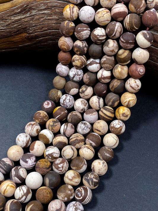 Natural Matte Zebra Jasper Gemstone Bead 4mm 6mm 8mm 10mm 12mm Round Bead, Gorgeous Brown White Color Jasper Gemstone Beads