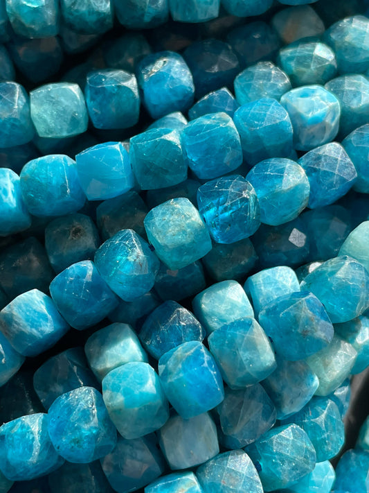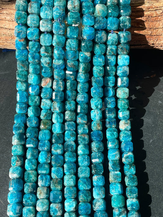 AAA Natural apatite stone bead. 4mm 8mm faceted cube shape bead. Gorgeous natural blue color apatite gemstone. Full strand 15.5”
