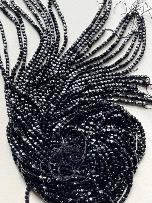 AAA Natural black spinel . Faceted 4mm square shape bead . Gorgeous natural black color spinet gemstone bead . Full strand 15.5” strand