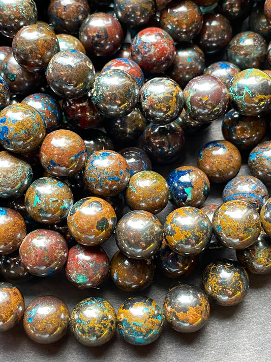 AAA Natural Azurite stone bead. 8mm 10mm round bead . Gorgeous natural brown with turquoise blue orange color . Real nice azurite gemstone.