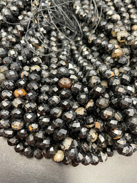 AAA Natural black Tourmaline bead. Faceted 5x8mm Roundell Shape. Gorgeous natural black color turmaline bead. Unique looking gemstone bead!
