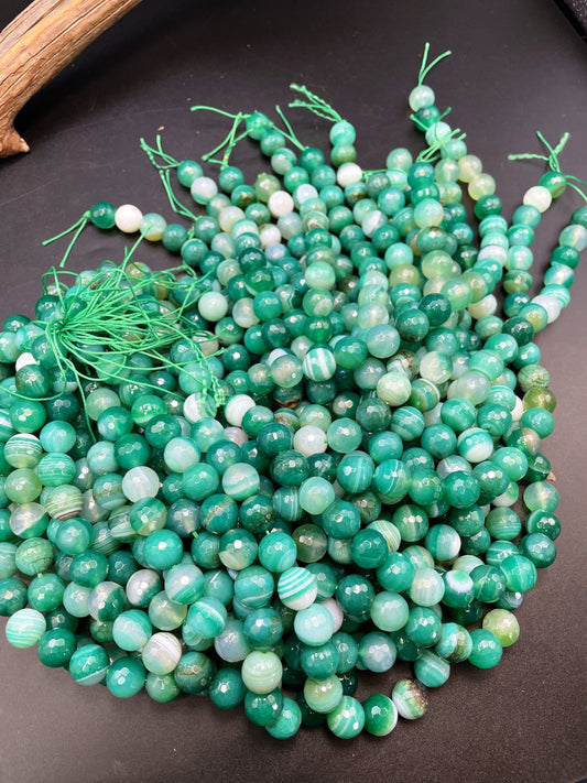 AAA Natural Botswana agate stone bead. Faceted 6mm 8mm 10mm 12mm round bead. Beautiful green color Botswana gemstone bead! Full strand 15.5”