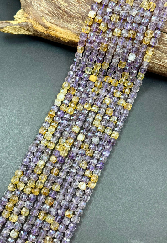 Natural gemstone bead. Faceted 7mm CUBE shape bead. AMETRINE gemstone bead. Clear Purple Orange Excellent Quality. FULL strand 15.5”