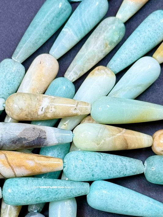 AAA natural FLOWER AMAZONITE Teardrop 30x10mm gemstone bead. Beautiful natural Blue Green Beige color gemstone bead. Full Strand 15.5"