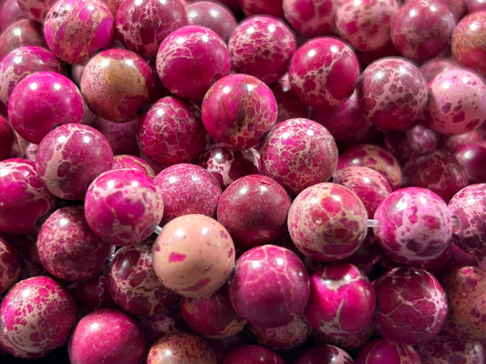 Natural Sea Sediment Fuchsia Gemstone Bead 4mm 6mm 8mm 10mm 12mm Round Beads, Beautiful Color Fuchsia Imperial Bead Full Strand 15.5