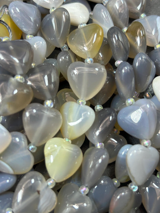 NATURAL Botswana Gemstone Bead 14mm Heart Shape Bead, Beautiful Gray Color Botswana Agate Gemstone Bead, Great Quality 15.5" Strand