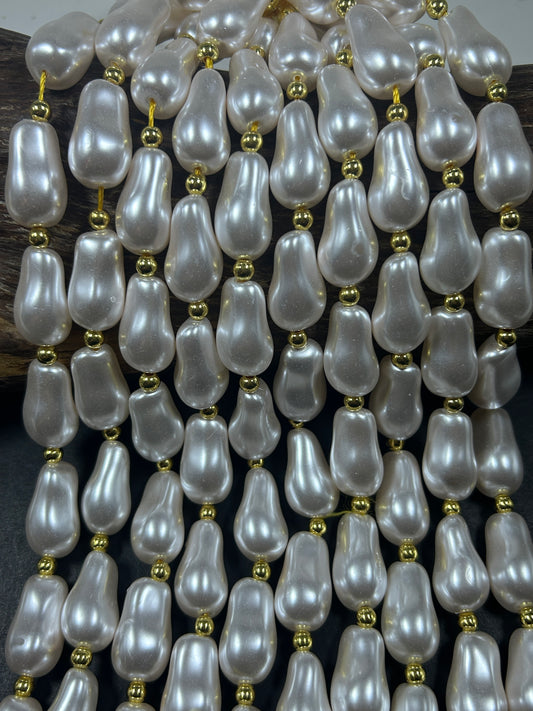 Chinese Swarovski Pearl Crystal Beads 13.5x9mm Baroque Bead, Beautiful White Swarovski Crystal Pearl 15.5"