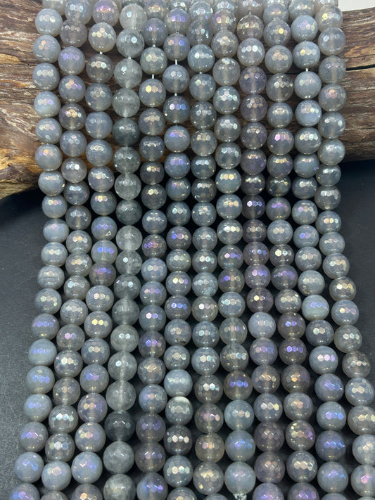 Beautiful Mystic Agate Gemstone Bead Faceted 6mm 8mm 10mm 12mm Round Bead, Beautiful Gray Color Agate Gemstone Bead Full Strand 15.5"