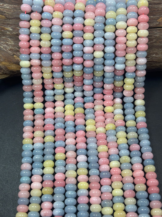 Beautiful Multicolor Jade Gemstone Bead 8x5mm Smooth Rondelle Bead, Gorgeous Multicolor Morganite Colors Jade Bead Full Strand 15.5"