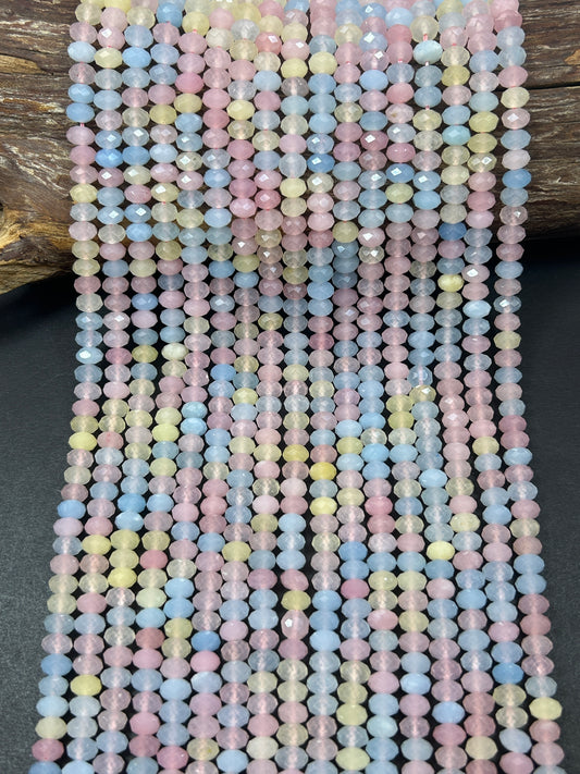 Natural Morganite Gemstone Bead Faceted Rondelle Shape, Beautiful Natural Pastel Pink Blue Yellow Color Morganite Beads 15.5" Strand