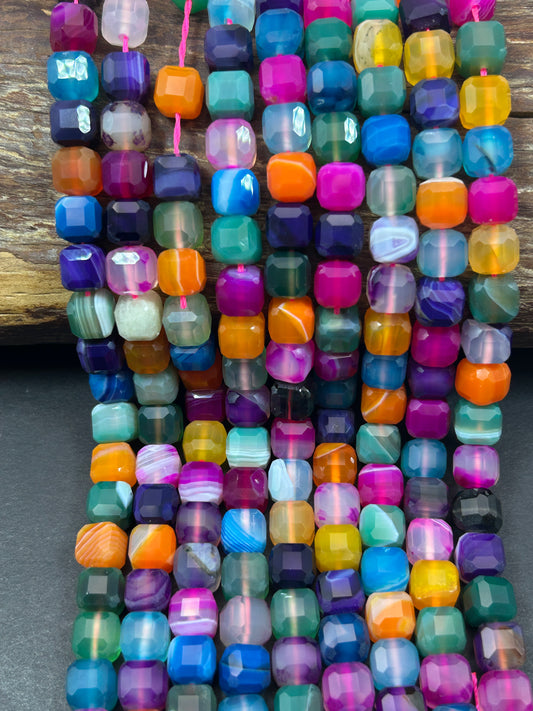 AAA Natural Mixed Botswana stone bead. Faceted 8mm cube shape bead. Beautiful multicolor gemstone bead. High quality bead!