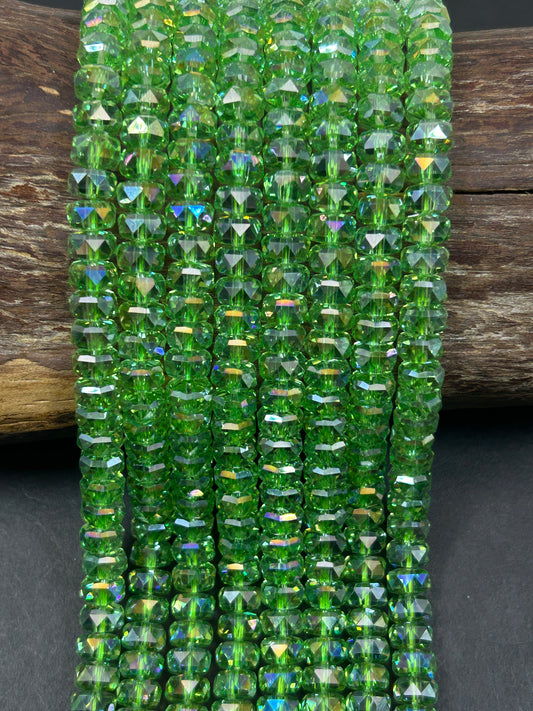 Natural Mystic Crystal Glass Faceted Rondelle 5x8mm Beautiful Grass Green Color Handmade Jewelry Loose Bead Loose Gemstone Full Strand 15.5"