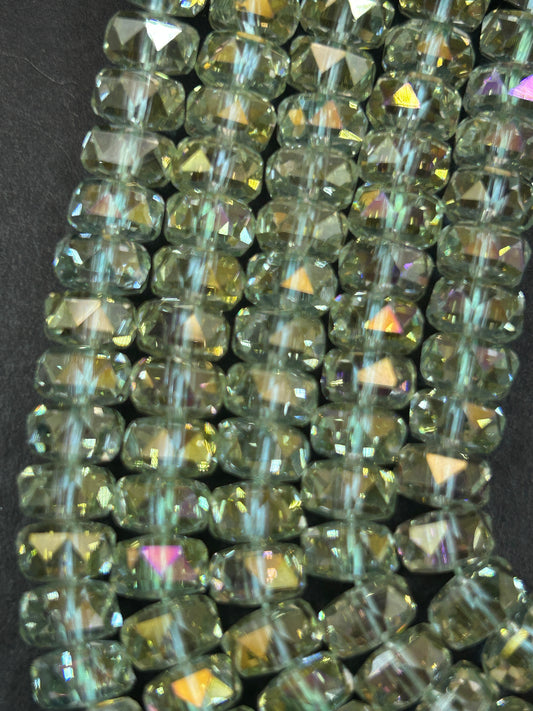 Natural Mystic Crystal Glass Faceted Rondelle 5x8mm Beautiful Spring Green Color Handmade Jewelry Loose Bead Loose Gemstone Full Strand 15.5
