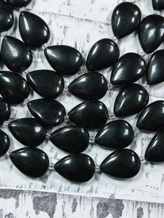 Natural Black Onyx Gemstone Bead 17x13mm Teardrop Shape Bead, Beautiful Natural Black Color Onyx Gemstone Beads, Full Strand 15.5"