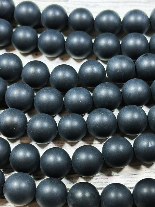 AAA Natural Matte Black Onyx Gemstone Bead 4mm 6mm 8mm 10mm 12mm Smooth Matte Round Beads, Full Strand 15.5"