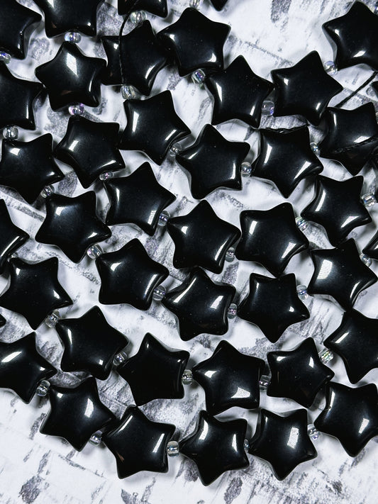 Natural Black Onyx Gemstone Bead 15mm Star Shape Bead, Natural Black Color Black Onyx Gemstone Beads, Excellent Quality Full Strand 15.5"