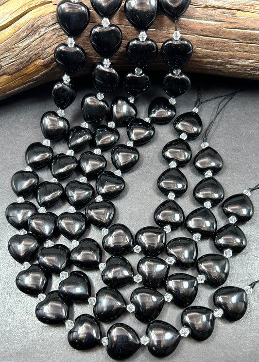 Natural Black Onyx Gemstone Bead 15mm Heart Shape Bead, Natural Black Color Black Onyx Gemstone Beads, Excellent Quality Full Strand 15.5"