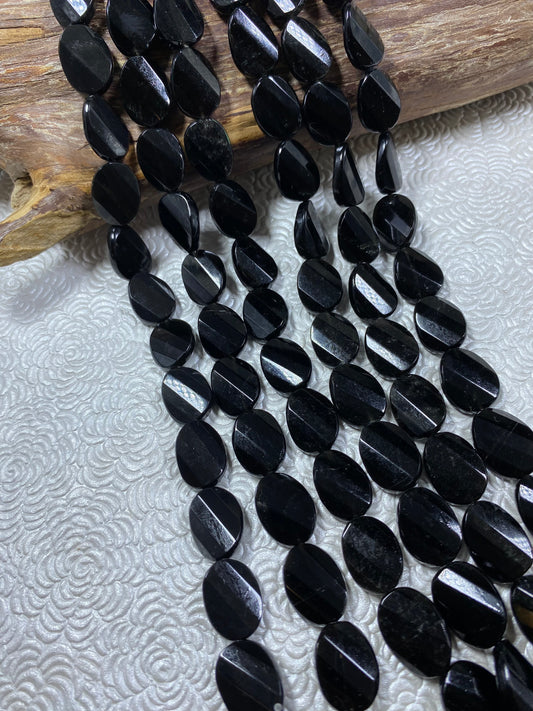 AAA Natural black onyx curved oval bead 14 x 19mm. Natural gemstone oval beads. Great for jewelry making ! 15.5''