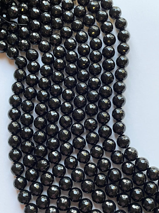 AAA Natural Black Onyx Gemstone Bead Faceted 4mm 6mm 8mm 10mm 12mm Round Beads, Gorgeous Natural Black Color Onyx Gemstone Bead